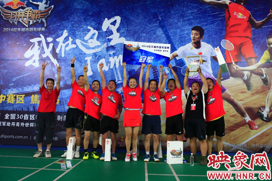 映象網(wǎng)訊 2014年5月31日,下午18:00時(shí),焦作永樂(lè)隊(duì)和濟(jì)源羽毛球協(xié)會(huì)代表隊(duì)正在奮力爭(zhēng)奪“羽林爭(zhēng)霸”2014紅牛城市羽毛球賽華中賽區(qū)焦作站的冠軍席位,尖叫聲和鼓掌聲此起彼伏,雙方實(shí)力相當(dāng),懸念較大,最終決戰(zhàn)7輪,方才分出勝負(fù),焦作永樂(lè)隊(duì)幸運(yùn)衛(wèi)冕,拿到了通往華中 賽區(qū)大區(qū)賽的最后一張通關(guān)門(mén)票!