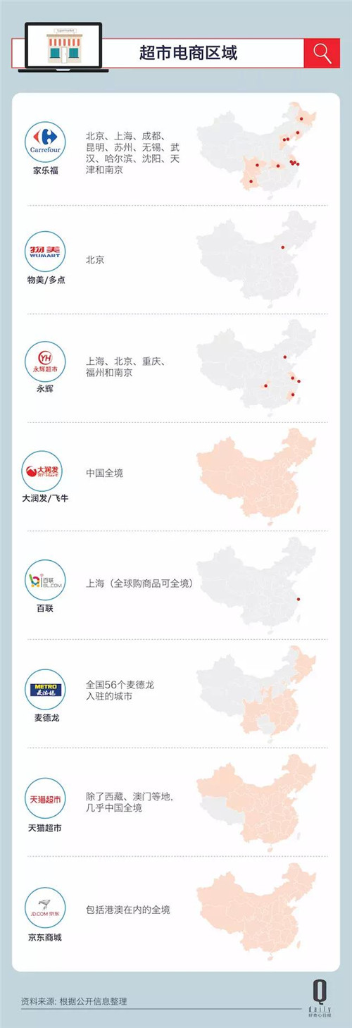從左至右:家樂福、麥德龍、多點(diǎn)(物美)