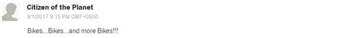 網(wǎng)友Citizen of the Planet:“自行車……自行車……我要更多自行車!??!”