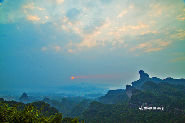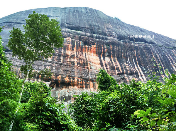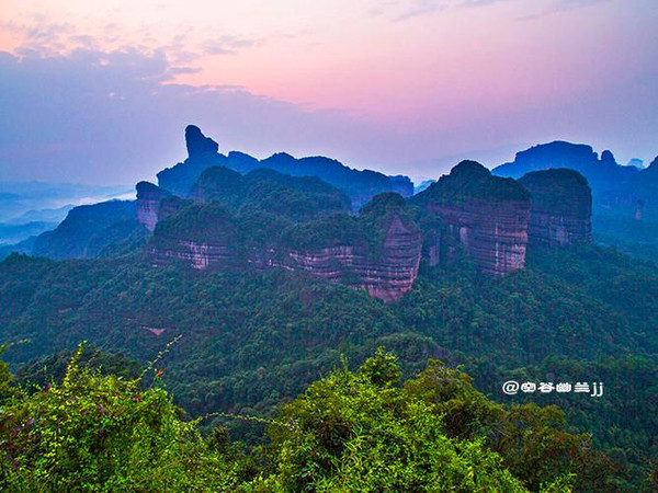 丹霞山之美,是那種把雄奇包裹在雋秀里的含蓄之美。它并不張揚(yáng),遠(yuǎn)望像是一幅優(yōu)美寧?kù)o的水彩畫,顯示出一種優(yōu)雅之美、從容之美和曠達(dá)之美。雖然它的山勢(shì)并不高,但它的許多懸崖峭壁,像刀削斧鑿,直指藍(lán)天,無(wú)數(shù)奇巖美洞,隱藏于山中,景色相當(dāng)奇麗。