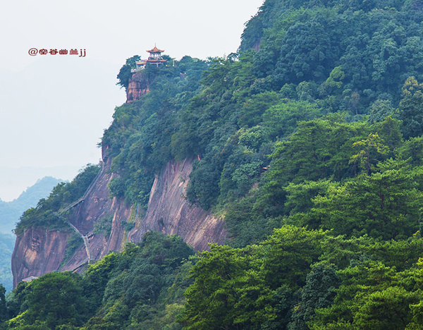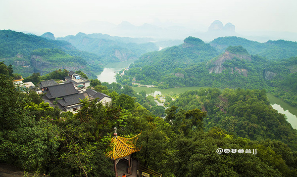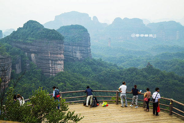 從山腳下乘索道上丹霞山主山之巔—寶珠峰,霧突突的天,在騰空而上的索道上縱目遙望置身于崇山峻嶺之中,不一會(huì)兒就到達(dá)寶珠峰頂,走到東部觀景臺(tái)(韶音亭)遠(yuǎn)眺,群峰疊翠,連綿起伏,“無(wú)限風(fēng)光在險(xiǎn)峰”的詩(shī)情畫意,得到淋漓盡致的體現(xiàn),讓人感受到世界名山的神奇魅力。
