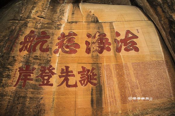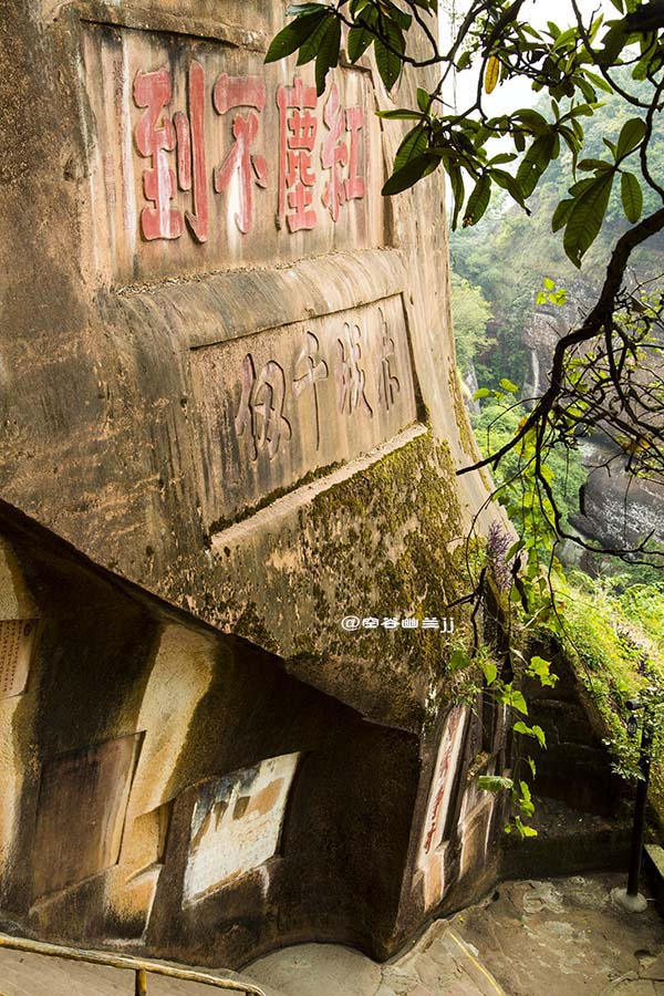 丹霞山的真味也是禪味。寂寂群山幽幽叢林,歷來(lái)是釋家修行隱逸之地。別傳寺寺前石上劈面就見“紅塵不到”四字佛偈,仿佛禪風(fēng)拂面,梵聲過(guò)耳,把萬(wàn)丈紅塵都拋到身后去。