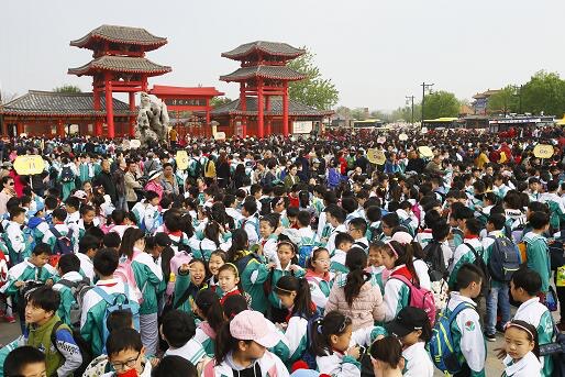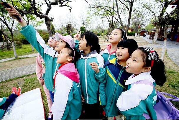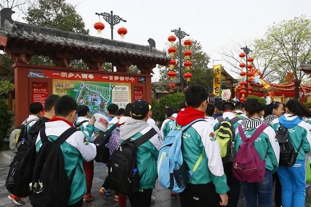 柳色如煙絮如雪,別樣春美景,盡在清明上河園。如織的游人中自然少不了研學旅行少年們的身影。