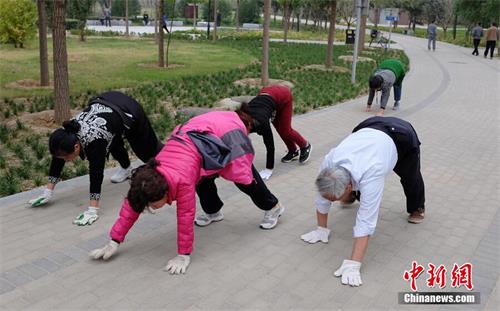2015年10月22日,河南鄭州,商城遺址公園內(nèi),一群人爬行鍛煉的人:他們戴著手套,四肢著地,彎腰弓背,在地上橫爬、豎爬,并不時做出撇胳膊、蹬腿的動作。河南省中醫(yī)院治未病中心副主任醫(yī)師呂沛宛呂大夫說,爬行健身起源于華佗的“五禽戲”,是通過模仿動物的爬行 動作來達(dá)到健身目的。另外,爬行是全 身性協(xié)調(diào)活動,使一些平時使用較少的肌肉得到鍛煉,可強(qiáng)化全身的肌肉、韌帶、骨骼等。圖片來源:視覺中國