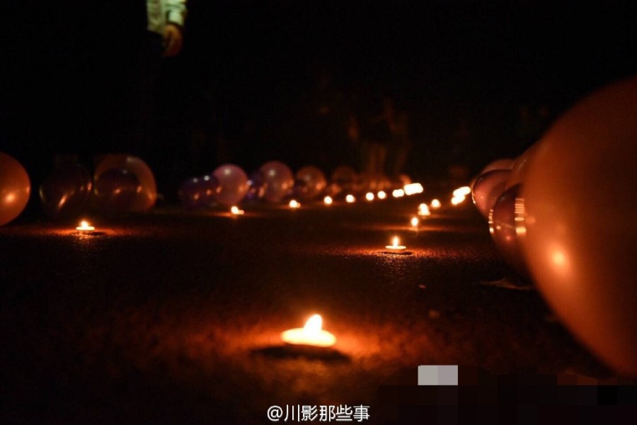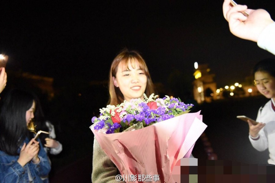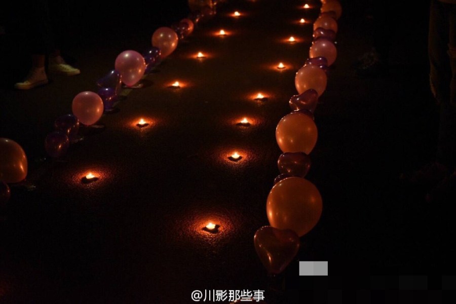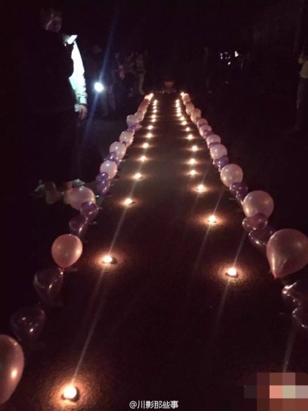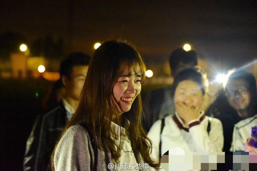 這不是求婚!4月6日晚,四川電影電視學(xué)院操場上川影2015級編導(dǎo)六班的同學(xué)們給美女輔導(dǎo)員過生日,全班男生單膝跪地唱《小幸運》。