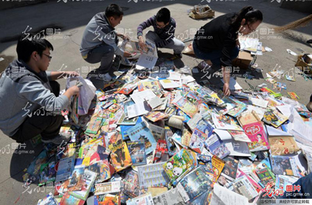 日前,河北省邯鄲市“掃黃打非”領導小組辦公室組織開展“2016年邯鄲市侵權盜版及非法出版物集中銷毀”活動。圖為工作人員現(xiàn)場銷毀侵權盜版及非法出版物。郝群英攝/光明圖片