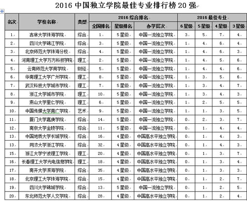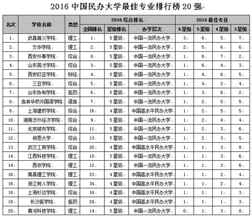 在最新2016中國(guó)各地區(qū)大學(xué)最佳專業(yè)排行榜中,北京市高校有74專業(yè)榮膺中國(guó)七星級(jí)專業(yè),蟬聯(lián)第1,上海列第2,江蘇居第3,湖北列第4,湖南居第5。在2016中國(guó)民辦大學(xué)最佳專業(yè)排行榜中,武昌首義學(xué)院、文華學(xué)院、西安外事學(xué)院、山東英才學(xué)院和西安歐亞學(xué)院名列前5強(qiáng)。在2016中國(guó)獨(dú)立學(xué)院最佳專業(yè)排行榜中,吉林大學(xué)珠海學(xué)院、四川大學(xué)錦江學(xué)院、北京師范大學(xué)珠海分校、河南理工大學(xué)萬方科技學(xué)院和云南師范大學(xué)商學(xué)院名列前5強(qiáng)。