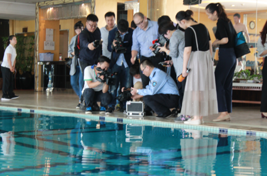 今天上午,記者跟隨相關部門將對此前檢測過的場館再次進行突擊臨檢,11時,對鄭州索菲特再次進行臨檢,發(fā)現(xiàn)水池中的游離性余氯值依然不合格,責令場館負責人限期整改。