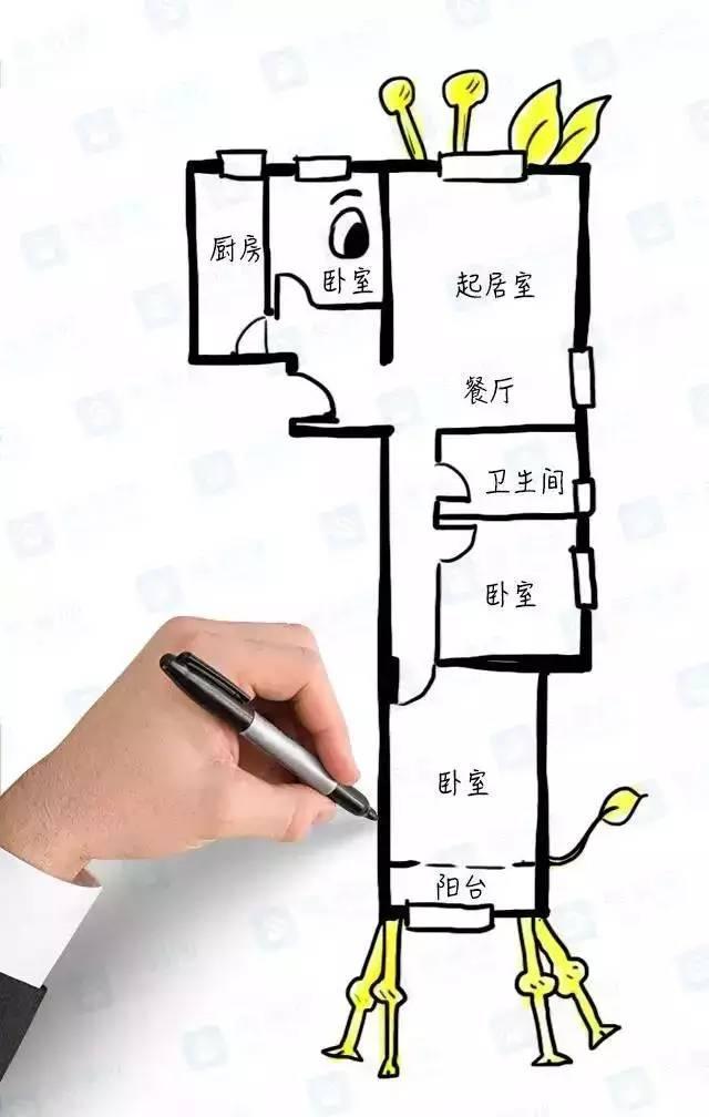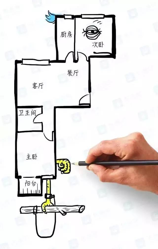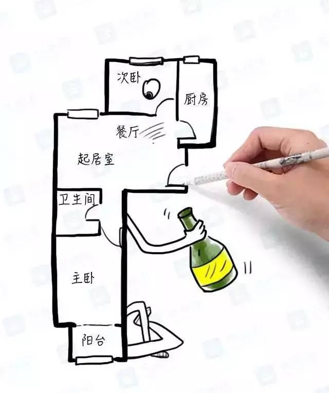 3、客廳有采光,但是房間旁的過道又長又窄,臥室在最盡頭,光線完全照不過去,衛(wèi)生間沒有窗戶,又和廚房一起堵在過道處,味道一定不好聞。