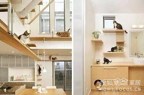 5.可以設置了一個步步高貓爬架。可以給好幾只貓?zhí)峁┩瑫r睡覺還不互相打擾的地方。然后和這個貓爬架相連的是一整面墻的貓?zhí)_。
