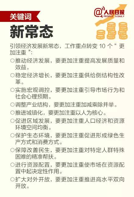 會議認為,認識新常態(tài)、適應新常態(tài)、引領新常態(tài),是當前和今后一個時期我國經濟發(fā)展的大邏輯,這是綜合分析世界經濟長周期和我國發(fā)展階段性特征及其相互作用作出的重大判斷。要適應新常態(tài),需要在理論上作出創(chuàng)新性概括,在政策上作出前瞻性安排。