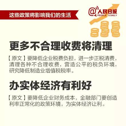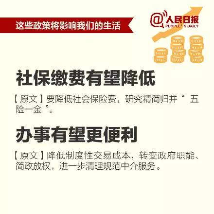 這次會議還用十個“更加注重”指明了新常態(tài)下應該“怎么干”。更為關鍵的是,這個看似“高大上”的經濟工作會議,其實離你我并不遙遠:社會保險費有望降低、非戶籍人口也能住公租房、鼓勵房企適當降房價……中央敲定下的這些事,新的一年毫無疑問將給你我生活帶來深刻影響。