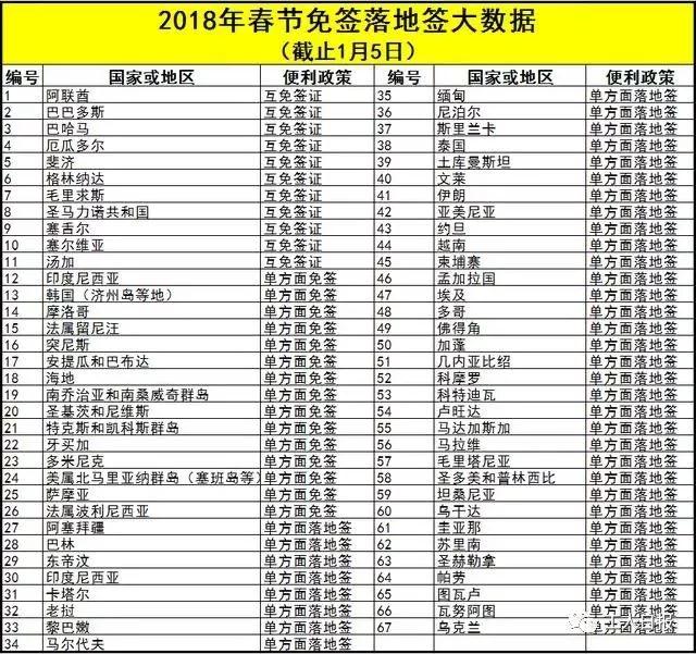 馬上就要春節(jié)了,不準備出國轉(zhuǎn)轉(zhuǎn),來場說走就走的旅行嗎?攜程8日發(fā)布的《2018年免簽落地簽大數(shù)據(jù)報告》顯示,根據(jù)外交、領事部門發(fā)布的最新信息,截至2018年1月5日,持普通護照中國公民可以免簽、落地簽前往的國家和地區(qū)增加到67個。