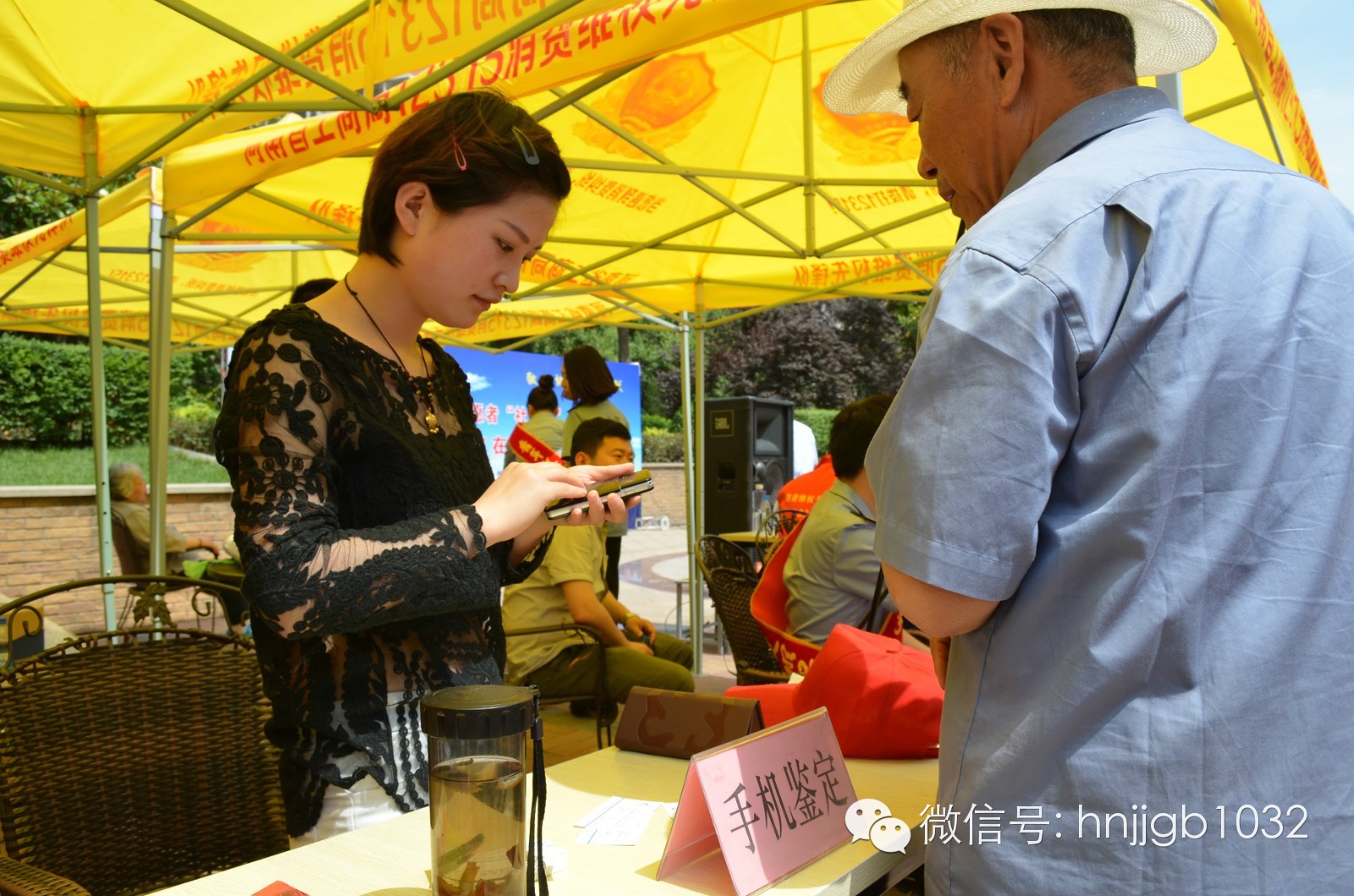 中國泰爾實驗室河南代理處的志愿者現(xiàn)場免費鑒定手機真?zhèn)巍?/p>