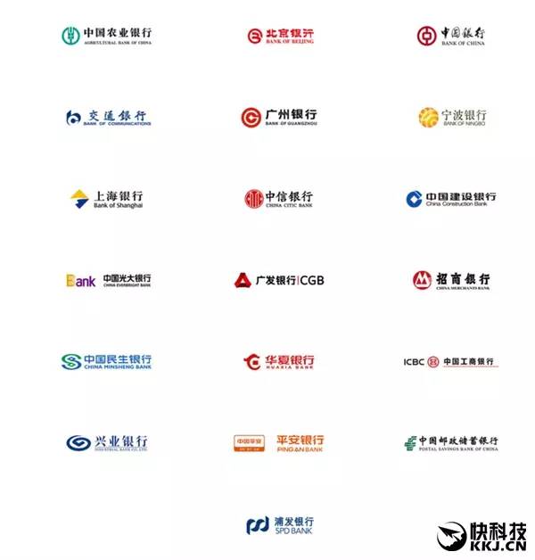 中國銀行、中國農(nóng)業(yè)銀行、中國工商銀行、中國建設(shè)銀行、招商銀行、中信銀行、浦發(fā)銀行、興業(yè)銀行、廣發(fā)銀行、廣州銀行、上海銀行、平安銀行、中國民生銀行、中國光大銀行、中國郵政儲蓄銀行、交通銀行、北京銀行、寧波銀行、華夏銀行。