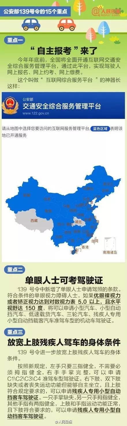 4月1日起,公安部《機(jī)動(dòng)車駕駛證申領(lǐng)和使用規(guī)定》將正式實(shí)施。今后,駕駛?cè)丝荚嚳梢跃W(wǎng)上自主預(yù)約,駕駛證在全國(guó)可以異地年審,每年提交駕駛證身體條件證明的年齡由60周歲改為70周歲……