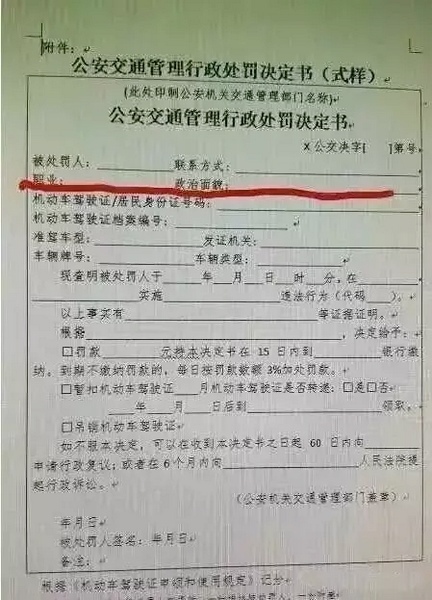《通知》要求,從7月1日起,各地在按照一般程序?qū)煌ㄟ`法行為作出行政處罰時,應(yīng)當(dāng)調(diào)查被處罰人的政治面貌和職業(yè)信息,并在制作《公安交通管理行政處罰決定書》時填寫。