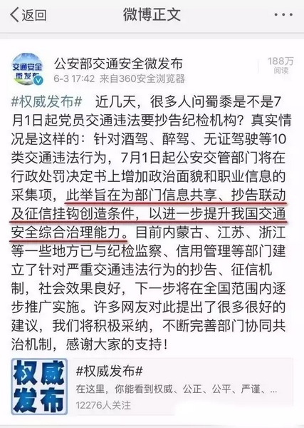 2016年7月1日起,機動車駕駛?cè)藢嵤┙煌ㄟ`法行為后,公安交通管理部門在對交通違法作出行政處罰時,被處罰人的政治面貌和職業(yè)信息將被調(diào)查,涉及中共黨員和國家工作人員的將被通報紀(jì)檢監(jiān)察機關(guān)。