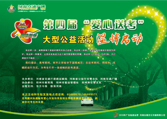 上圖為:河南交通廣播2010年全省愛(ài)心送考宣傳畫
