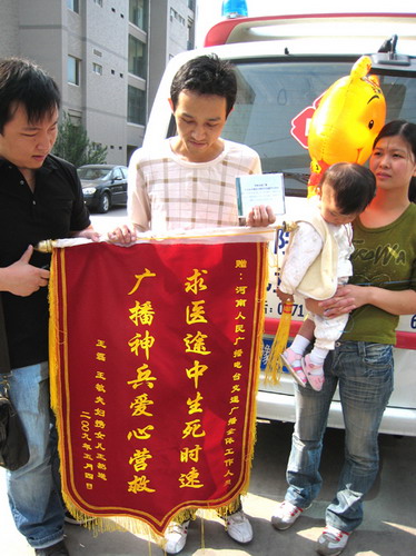 4月6日,在河南人民廣播電臺空中電波的幫助和協(xié)調下,衛(wèi)生、高速路政、交警等部門齊心協(xié)力,展開了一場挽救生命的接力大行動,信陽一名生命垂危的手足口病患兒王然得到了及時救助。經(jīng)過近一個月的精心治療,5月5日上午,王然康復出院,坐上了回家的列車。