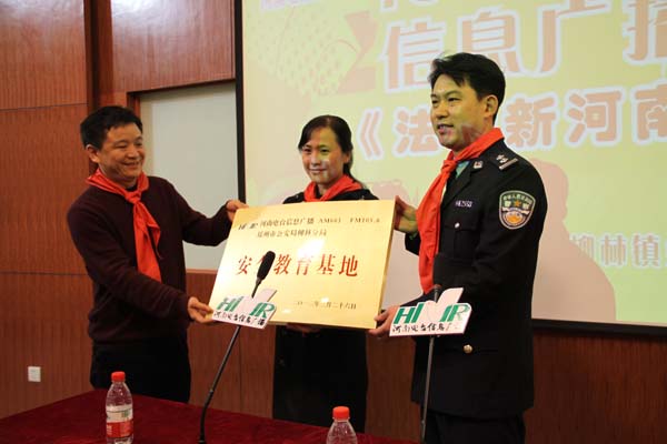 2012年3月26日是第十七個“全國中小學安全教育日”,在教育日當天舉行“中小學安全教育基地”掛牌儀式,河南電臺信息廣播依托日常欄目《法制新河南》的整合資源,將中小學安全宣傳教育常態(tài)化。據河南電臺信息廣播總監(jiān)李金鋒介紹,“教育基地建立以后,河南電臺信息廣播將聯合鄭州市公安局柳林分局,通過信息廣播AM603、FM105.6廣播頻率,以《法制新河南》欄目為陣地,長期持久的宣傳中小學安全教育知識,并為柳林鎮(zhèn)第四小學的學生提供書籍、器械等安全教育的物品,節(jié)目主持人和柳林分局的警官還將不定期的深入校園內,跟學生們面對面的交流、一對一的輔導。”