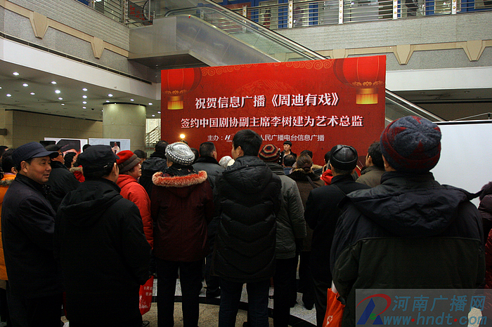 1月17日上午,河南人民廣播電臺《周迪工作室》掛牌儀式及中國戲劇家協(xié)會副主席李樹建先生受聘《周迪有戲》欄目藝術(shù)總監(jiān)簽約儀式在廣播大廈一樓大廳舉行。河南人民廣播電臺副臺長李海軍、河南人民廣播電臺信息廣播總監(jiān)李金鋒出席儀式。