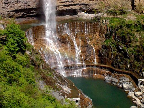 紅石河碧水橫溢、紅綠相映、色彩斑斕、明麗如畫,因海拔1100米被譽為“太行天河”。從紅石河畔俯瞰,山谷幽深、流水潺潺,河水順著光潔平整、錯落有致的紅石板流淌不息,直沖而下形成又一著名景點——天河大瀑布。紅石河的右畔是觀音洞,觀音洞里的泉水常年不斷、甘甜可口,用來泡茶增三分香,煮飯增加三分甜,現(xiàn)在敞開供應(yīng),保你一杯解風塵,二杯去疲乏,三杯大汗落。 八里溝的山,八里溝的水,甚至八里溝的每一塊石頭都引起世界的好奇。景區(qū)森林覆蓋率達90%,如今,八里溝景區(qū)已經(jīng)成為國內(nèi)很多前衛(wèi)、時尚的游客非常向往的一個人間天堂、世外桃源,也是春季旅游的經(jīng)典線路。