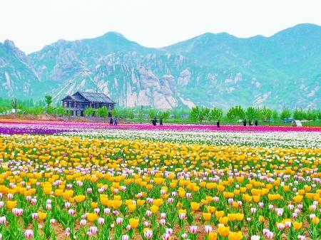 春天是賞花的季節(jié)。在嵖岈山天磨湖景區(qū)一側(cè),有著近600畝100多萬株的荷蘭郁金香種植基地,顏色多達36種的郁金香花,有的含苞待放,有的花開正艷,成片的黃、紅、粉、郁金香花色彩嬌艷炫麗,一瀉千里,氣勢逼人,令人心曠神怡。