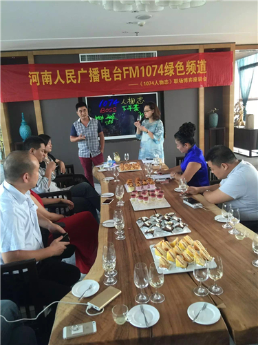 “2016年9月5日15點(diǎn),河南電臺綠色頻道《1074人物志》職場博弈座談會——首期BOSS下午茶舉辦,毗鄰如意湖的美景,12位曾經(jīng)做客人物志的大咖華山論劍、以講會友、不亦樂乎!”