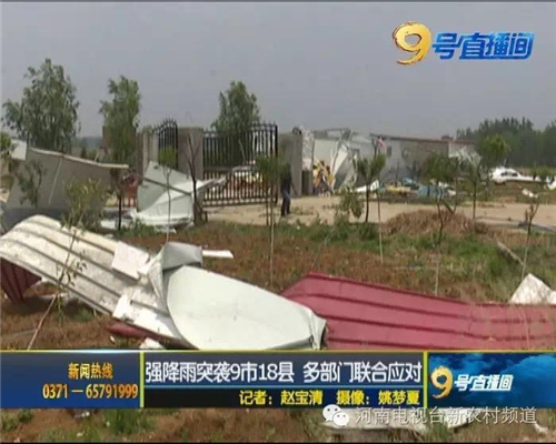 2016年6月5日晚22:10左右,方城縣博望鎮(zhèn)發(fā)生了嚴重的風(fēng)雹災(zāi)害,龍卷風(fēng)持續(xù)了20多分鐘,并伴隨有短時冰雹。受災(zāi)地點涉及四個行政村,受災(zāi)耕地面積達13600畝,損毀果樹8000株,蔬菜大棚140畝,花生、玉米受災(zāi)1300多畝。目前,該縣已組成4個工作組進去各個村,統(tǒng)計受災(zāi)情況,指導(dǎo)村里開展生產(chǎn)自救工作,把災(zāi)害損失降低到最低。