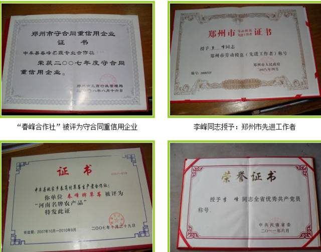目前合作社有生產(chǎn)、銷售和綜合服務(wù)三個(gè)組。2006年合作社的產(chǎn)品獲得了無(wú)公害認(rèn)證,春峰牌草莓2012年通過(guò)綠色食品基地和綠色食品認(rèn)證,也是河南省首家拿到草莓綠色食品證書(shū)的品牌。