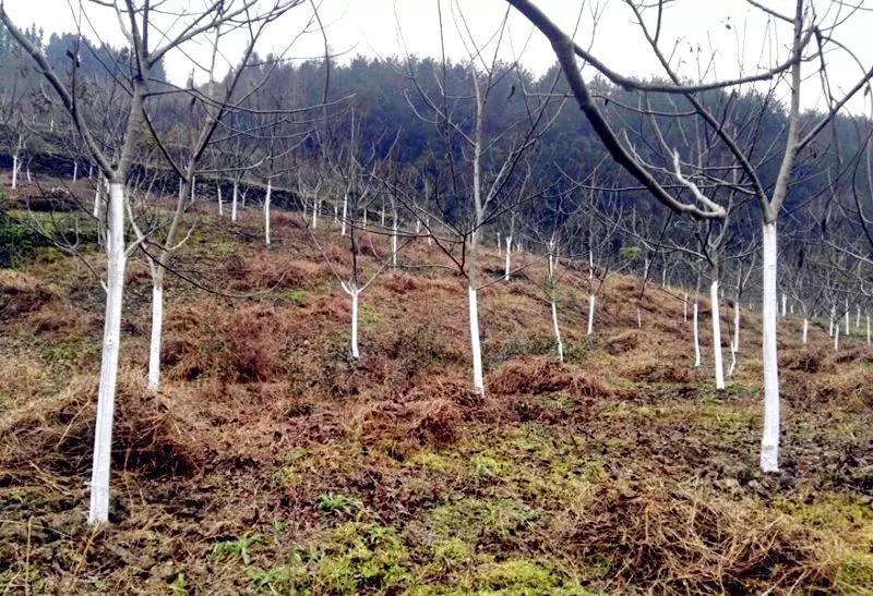 入冬后及時(shí)用涂白劑將核桃樹(shù)干和主枝均勻涂刷,使樹(shù)體溫度變化穩(wěn)定,不會(huì)有凍凍融融的情況,既防凍、防日灼,又能殺死樹(shù)干中的病菌、蟲(chóng)卵和成蟲(chóng),還可有效防止牲畜啃咬樹(shù)枝樹(shù)皮。涂白在11月中旬進(jìn)行。