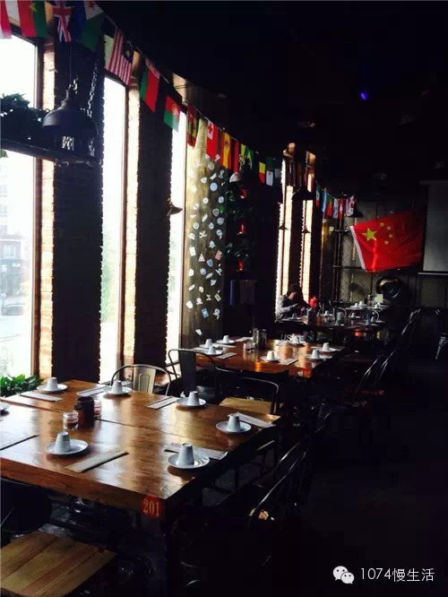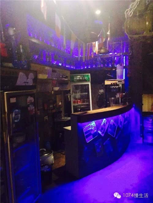 店內(nèi)的裝修風格就有點搖滾重金屬的意思,果然,夜幕降臨,燈光一開,立馬就有酒吧的氛圍了。