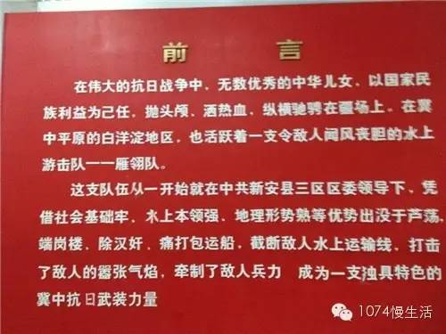 雁翎隊(duì)打日寇、鋤漢奸、端崗樓,打伏擊,功績(jī)卓著,被冀中軍區(qū)評(píng)為抗日先進(jìn)集體。他們使用過(guò)的排子船、大抬桿陳列在中國(guó)人民軍事博物館。