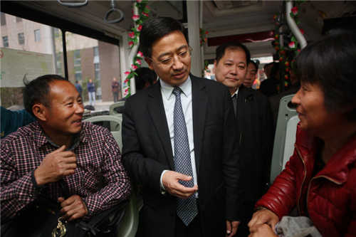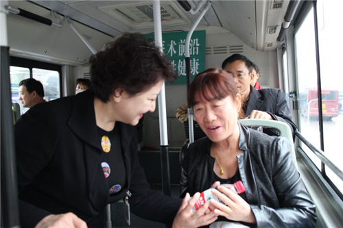 省醫(yī)院長(zhǎng)﹑公交總公司副總經(jīng)理上車(chē)體驗(yàn),詢(xún)問(wèn)乘客的感受