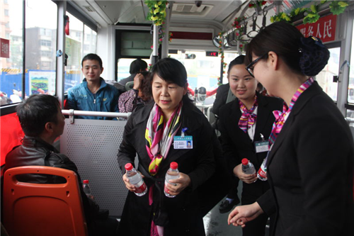 隨車(chē)服務(wù)人員贈(zèng)水給乘客,小小一瓶水讓歸家路更舒心