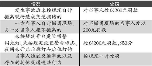 即日起,交管部門將依法加強(qiáng)對(duì)“發(fā)生輕微交通事故后,未按照規(guī)定自行撤離現(xiàn)場(chǎng)”的交通違法行為的處罰力度,輕微事故發(fā)生后撤離不及時(shí)致堵將被罰款200元,如果未按規(guī)定開(kāi)啟危險(xiǎn)報(bào)警閃光燈等,將處以200元罰款,記3分。交管部門表示,對(duì)應(yīng)挪車不挪車的事故當(dāng)事人“當(dāng)罰必罰”。