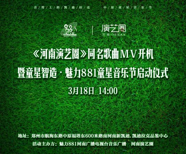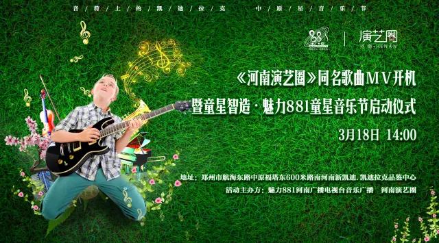 童星智造·魅力881童星音樂節(jié)啟動儀式暨《河南演藝圈》同名歌曲mv開機將于3月18日下午2點河南新凱迪·凱迪拉克品鑒中心舉行,本次活動由魅力881河南廣播電視臺音樂廣播和河南演藝圈主辦,讓我們一起為本土童星音樂藝術(shù)加油打CALL ?。?!