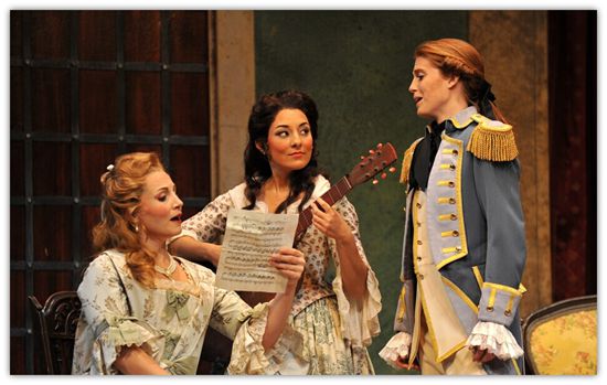 《你們可知道,什么是愛情》是少年凱魯比諾被叫到伯爵夫人房間里時所唱的一段詠嘆調(diào),此時的他情竇初開,幻想得到伯爵夫人的愛情,又有些害怕,在曲中表現(xiàn)得生動細膩。