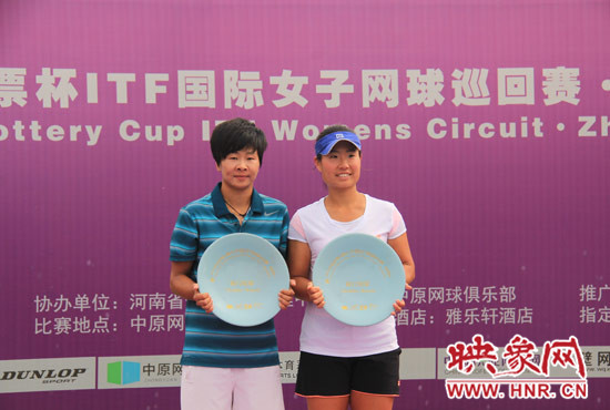 映象網(wǎng)訊(記者 駱瓊 文/圖)5月30日,2014中國體育彩票杯ITF國際女子網(wǎng)球巡回賽鄭州站在中原網(wǎng)球訓(xùn)練基地管理中心進(jìn)行了單打1/4決賽和雙打決賽。最終來自詹謹(jǐn)瑋/梁辰的“海峽組合”以兩個(gè)6-3奪得鄭州站雙打冠軍。
