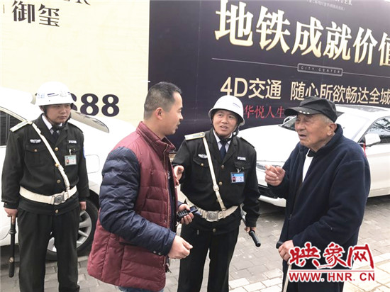 4月5日上午,在鄭州市工人路與汝河路交叉口附近,一手拄拐杖一手拎袋水果的八旬老漢向巡防隊員求助,說自己一大早到航海路帝湖廣場趕早市買水果,準(zhǔn)備到汝河路上的小外甥女家看看,結(jié)果一出早市就迷路了。不巧的是,老人所用的老年寶手機也出毛病聽不見聲音。他一直走了3個多小時也沒找到小外甥女家。