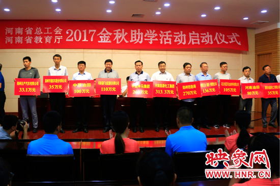 映象網(wǎng)快訊(記者 王寬 實(shí)習(xí)生 張璨榮 文/圖)又是一年金秋時(shí),助學(xué)圓夢(mèng)暖人心。8月16日,河南省總工會(huì)、河南省教育廳共同主辦的河南省2017“金秋助學(xué)”活動(dòng)啟動(dòng)儀式在鄭州舉行。省委副書記王炯,省人大常委會(huì)副主任、省總工會(huì)主席王保存,省政府副省長(zhǎng)徐濟(jì)超,省政協(xié)副主席張廣智出席啟動(dòng)儀式。