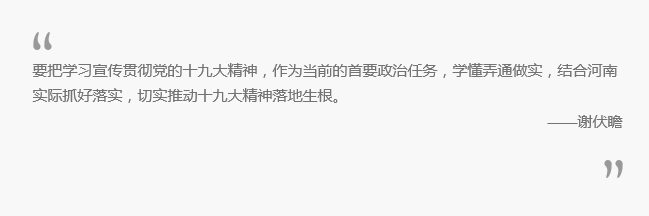 10月29日,省委書記、省人大常委會(huì)主任謝伏瞻到蘭考縣,宣講黨的十九大精神并就學(xué)習(xí)宣傳貫徹提出要求。