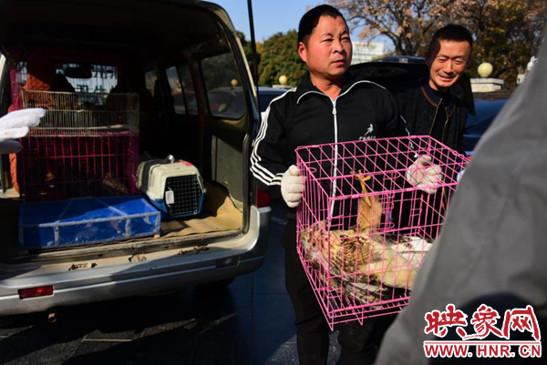 13日下午14時許,鄭州市人民公園西門口,鄭州市林業(yè)局野生動物救護(hù)站的工作人員將幾只鐵籠子分別裝上面包車?;\子里裝著的是救護(hù)站近段時間救護(hù)的已經(jīng)具備放生條件的鳥類和獸類,這些動物將在自然條件比較優(yōu)越的新鄭市具茨山放生。