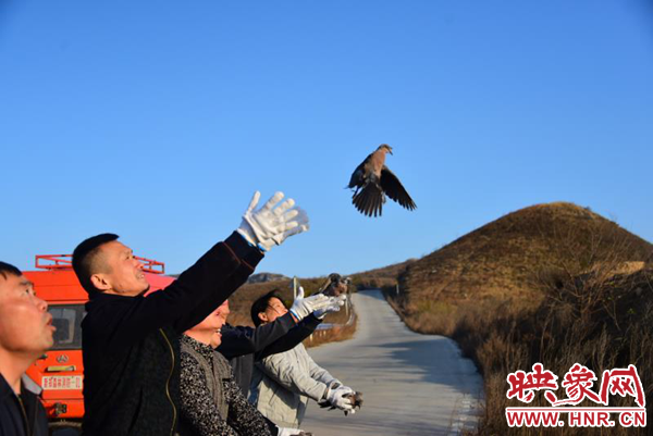 映象網(wǎng)快訊(記者 邱延波 文/圖)11月13日,鄭州市林業(yè)局野生動物救護(hù)站在新鄭市具茨山進(jìn)行了一次大規(guī)模的放生行動,80多只近期救護(hù)已經(jīng)傷愈或者康復(fù)的鳥類和獸類回歸大自然。