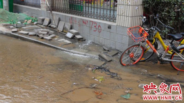 早上6時(shí)30分許,未來路辦事處巡防隊(duì)員司廣紅等人發(fā)現(xiàn)居民因小區(qū)積水,出行困難,用磚塊鋪路,方便居民進(jìn)出。由于不明確是自來水管道還是熱力管道發(fā)生了爆裂,巡防隊(duì)員也找不到附近的閥門,只好先撥打鄭州城建服務(wù)熱線12319反映此事。