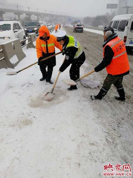 從1月3日早上7點開始,鄭州交警就開始上路執(zhí)勤,交警三大隊全體民警提前7:00到崗,準(zhǔn)備融雪劑拋灑車5臺,準(zhǔn)備融雪劑100噸,鏟車3臺,不間斷作業(yè)清除轄區(qū)道路的積雪。