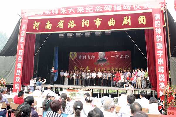 5月9日,由河南省藝術研究院、省戲劇家協(xié)會、省戲曲表演學會、洛陽市文廣新局、洛陽市戲劇家協(xié)會、洛陽市曲劇院主辦的,曲劇宗師?一代名伶朱六來先生紀念碑揭碑儀式在其故里洛陽市關林鎮(zhèn)大東村舉行。來自省內的著名戲劇評論家、劇作家馬紫晨,河南省藝術研究院院長方可杰,戲劇評論家譚靜波,曲劇老藝術家劉衛(wèi)生、馬騏、牛長欣、高桂枝、郭鳳娥等,以及各地市兄弟院團代表參加了本次揭碑儀式。同時,著名曲劇表演藝術家“曲劇泰斗”馬騏,有南牛北馬之稱的南牛著名曲劇表演藝術家牛長欣,以及各兄弟院團的著名演員獻上了精彩的專場演出。