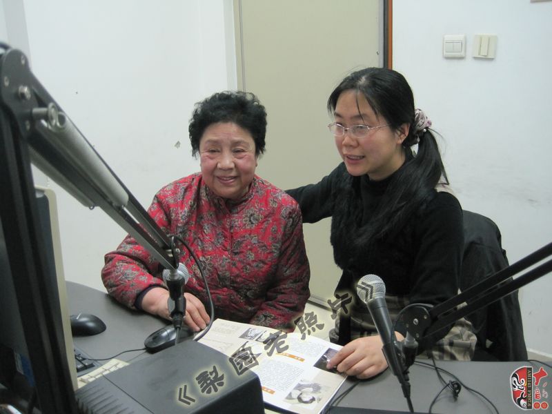 王素君(左)在河南電臺(tái)戲曲廣播錄音間錄制《梨園老照片》節(jié)目
