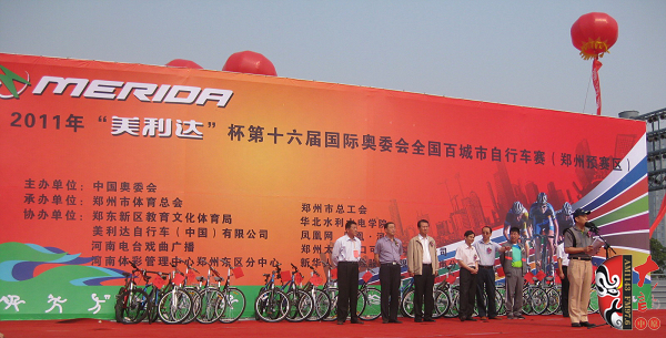 2011年5月28日,由中國(guó)奧委會(huì)主辦,鄭州市體育總會(huì)、鄭州市總工會(huì)承辦,鄭東新區(qū)教育文化體育局、美利達(dá)自行車(中國(guó))有限公司、河南電臺(tái)戲曲廣播、河南體彩管理中心鄭州東區(qū)分中心、華北水利水電學(xué)院、鳳凰網(wǎng)、鄭州太古可口可樂(lè)有限公司、新華人壽保險(xiǎn)有限公司河南分公司協(xié)辦的第十六屆國(guó)際奧委會(huì)主席杯全國(guó)百城市自行車賽鄭州預(yù)賽區(qū)的比賽在鄭東新區(qū)的商務(wù)內(nèi)環(huán)公路舉行。